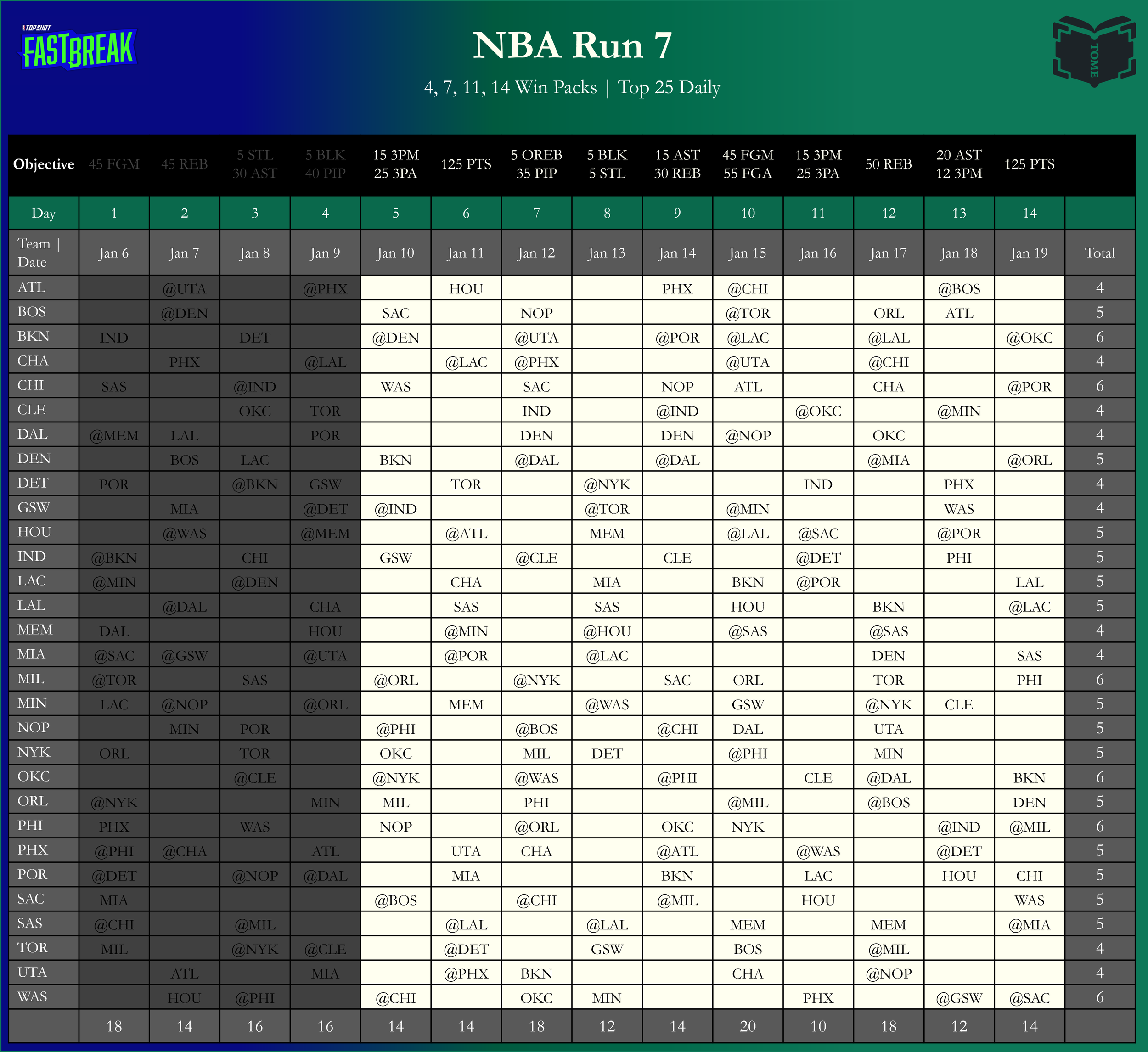 Tome+ Exclusive: Witty’s Cheat Sheet - plan your series using data for each day & objective (updated for Run 7)