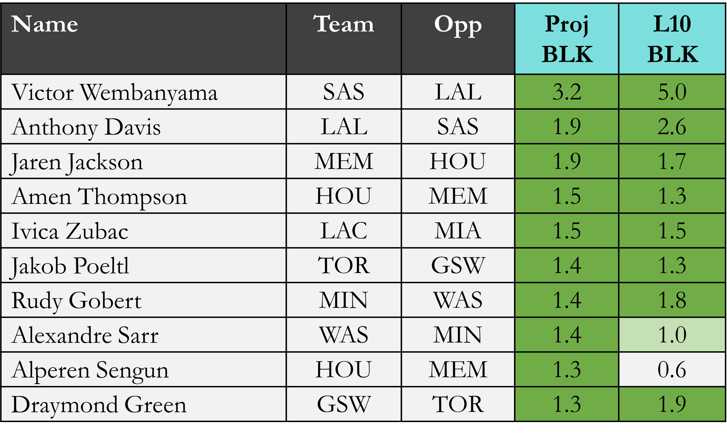 Top players in projected blocks & steals according to Rotowire & NBA.com, which is available in the table(s) below. Overall rank is based on daily projections, last 10 games, and rest of season projections, which is stack ranked amongst peers for each objective. When there is a single objective, the three data points are still used to stack rank the players vs. ranking solely on projections. For tome+ subscribers, projected rest-of-season stats are available in the provided data file. Omission of certain players would be based on injuries at the time of data pull.