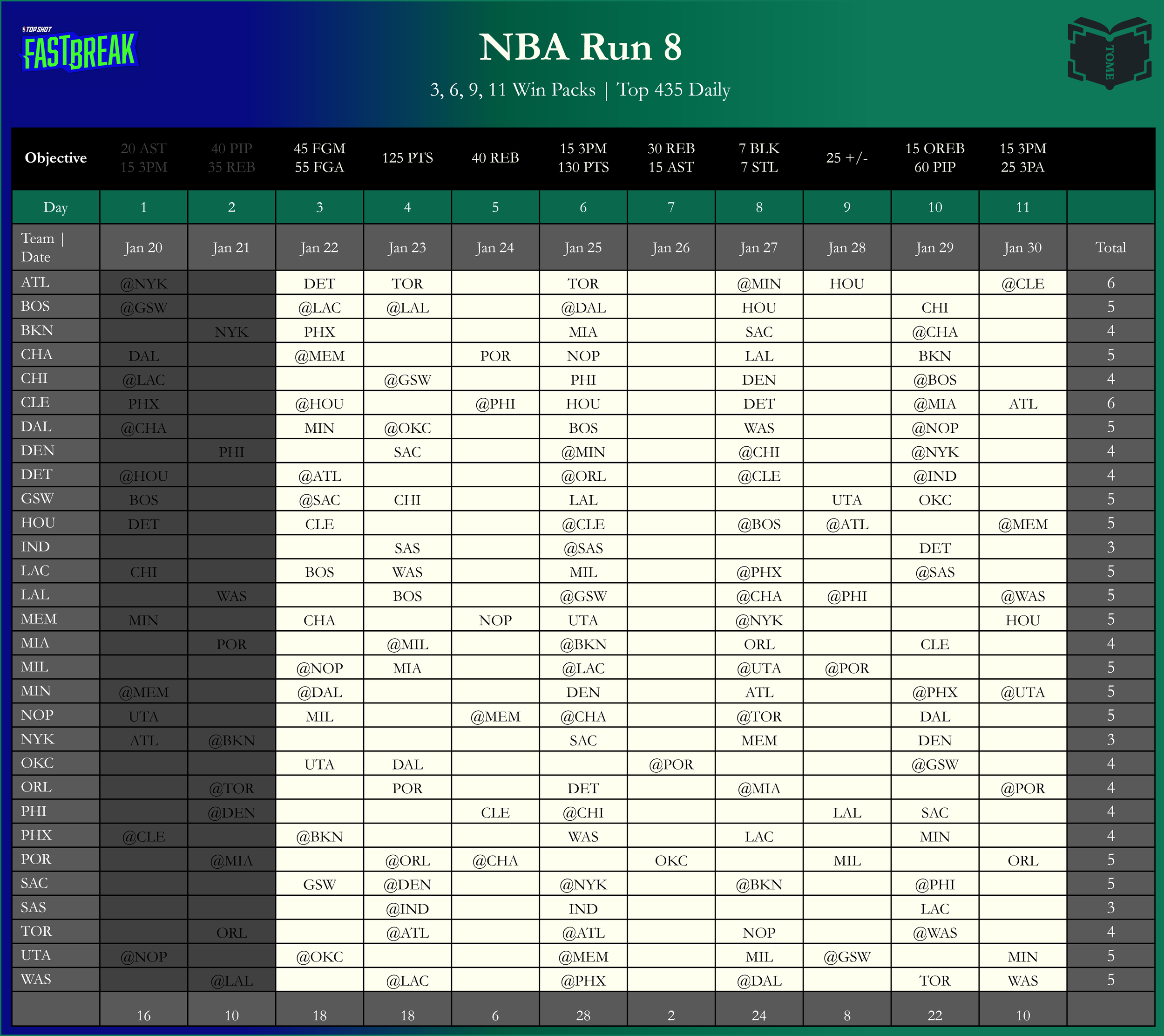 3, 6, & 9 wins: One (1) Fast Break Pack (per tier)