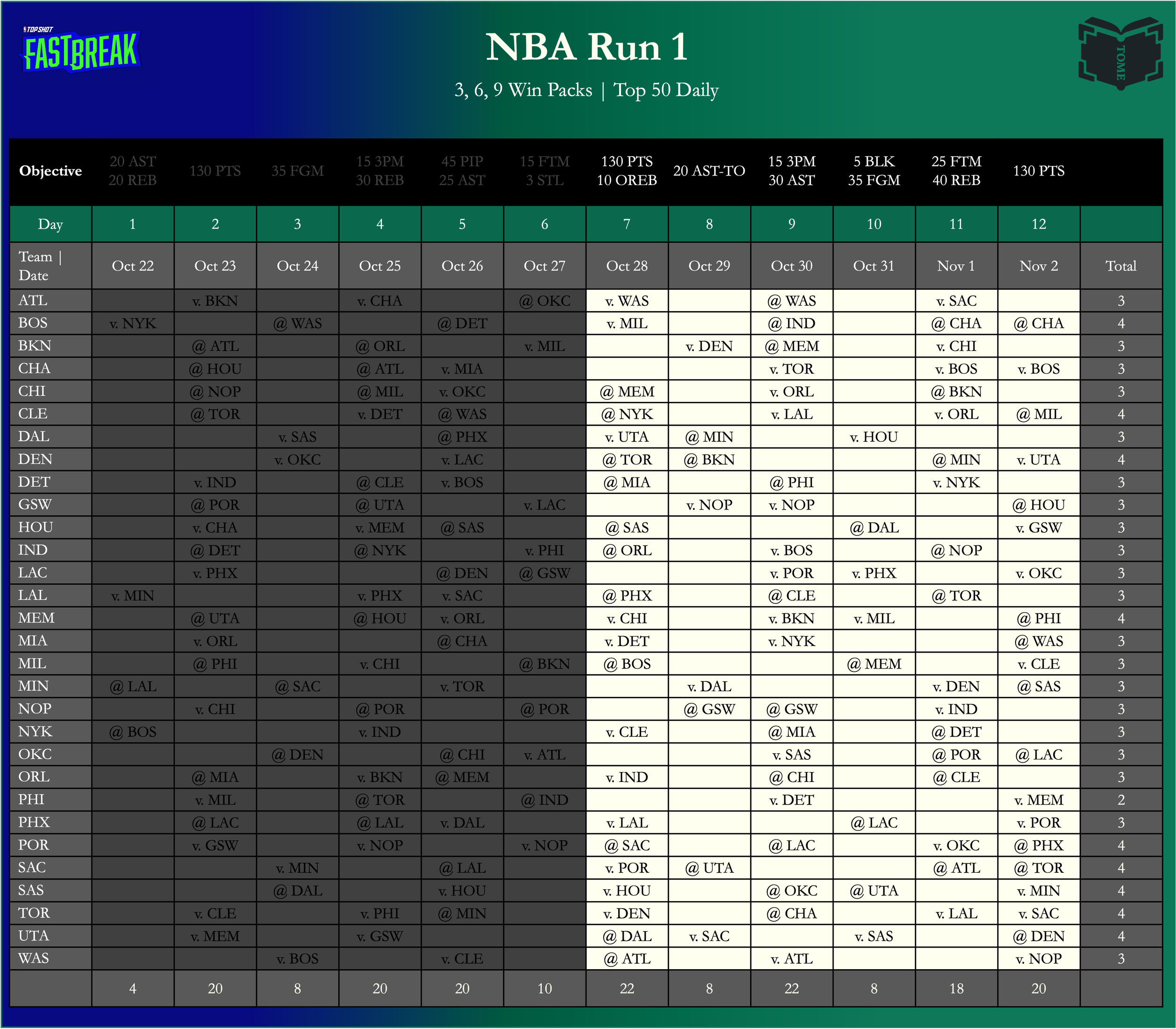 We’ve reached the halfway point of Fast Break Run 1 and the results have been mixed. Overall, this series is proving to be challenging but no day felt impossible before the first day’s tip-off. Today feels like the first where some may choose to sit out based on the resources it would require to participate. For the majority, there isn’t enough wiggle room to sit out, so we push forward. For today’s lineups, anticipate high scoring players like Luka Doncic and Jayson Tatum who are both projected to score above the minimum threshold. On top of the points are offensive rebounds, so Sabonis and Giannis will be other popular inclusions today (if available).