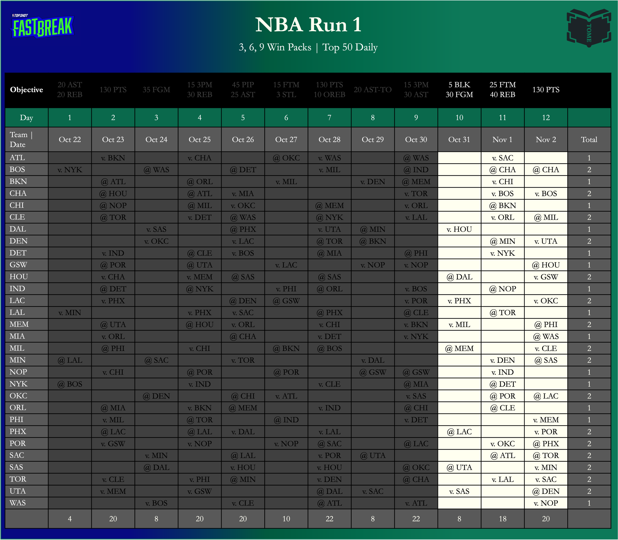Tomorrow, there will only be 18 teams in action and the objective will require 25 FTM & 40 REB