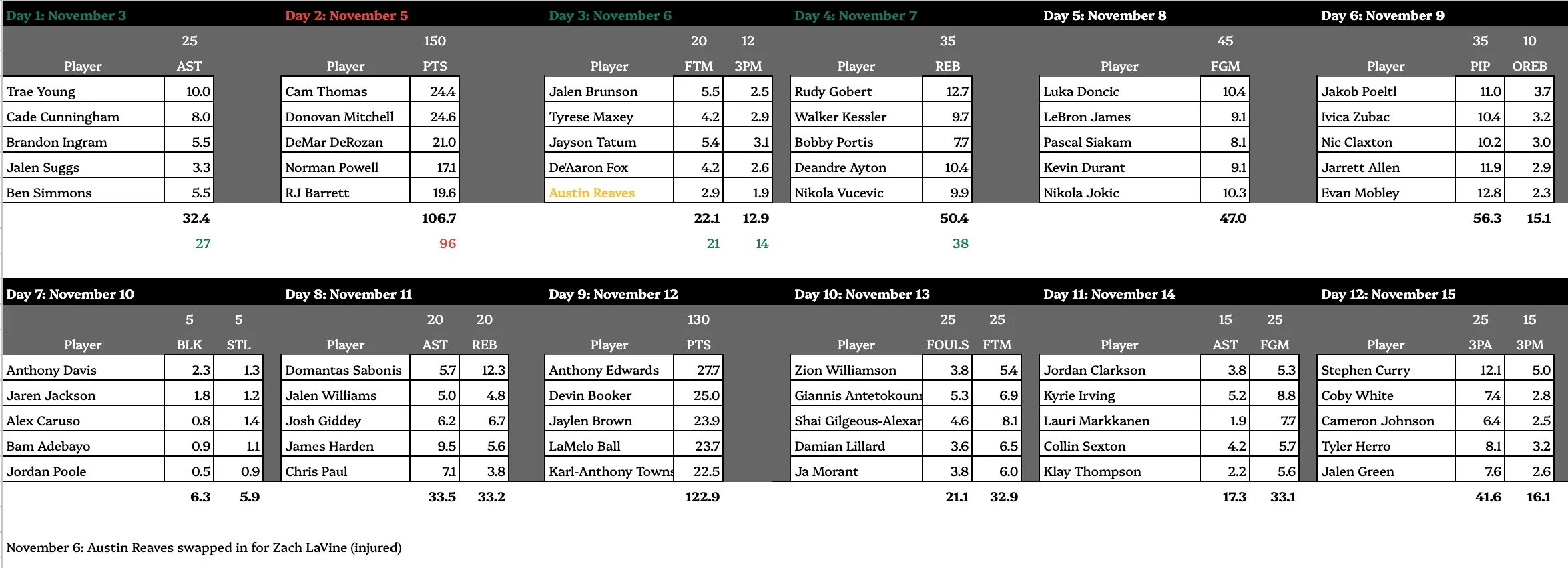 Day 11 only has two teams in action (DAL & UTA) - their last game of this run