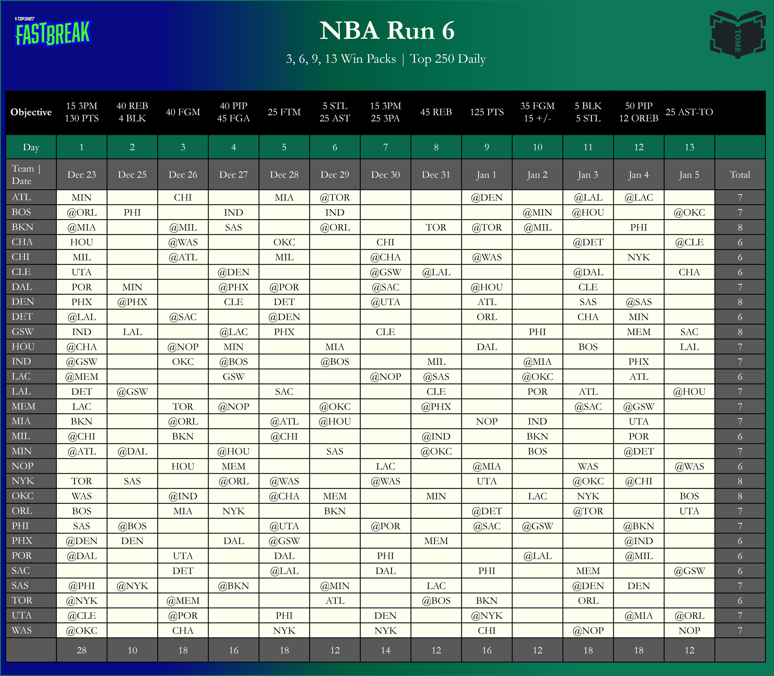 Tome+ Exclusive: Witty’s Cheat Sheet - plan your series using data for each day & objective (in progress for Run 6)