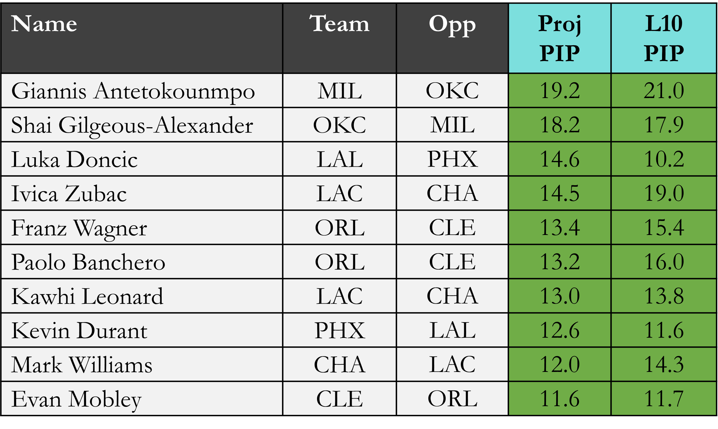 The top players for today’s Fast Break objective(s). Source: Rotowire & NBA.com, 2025.
