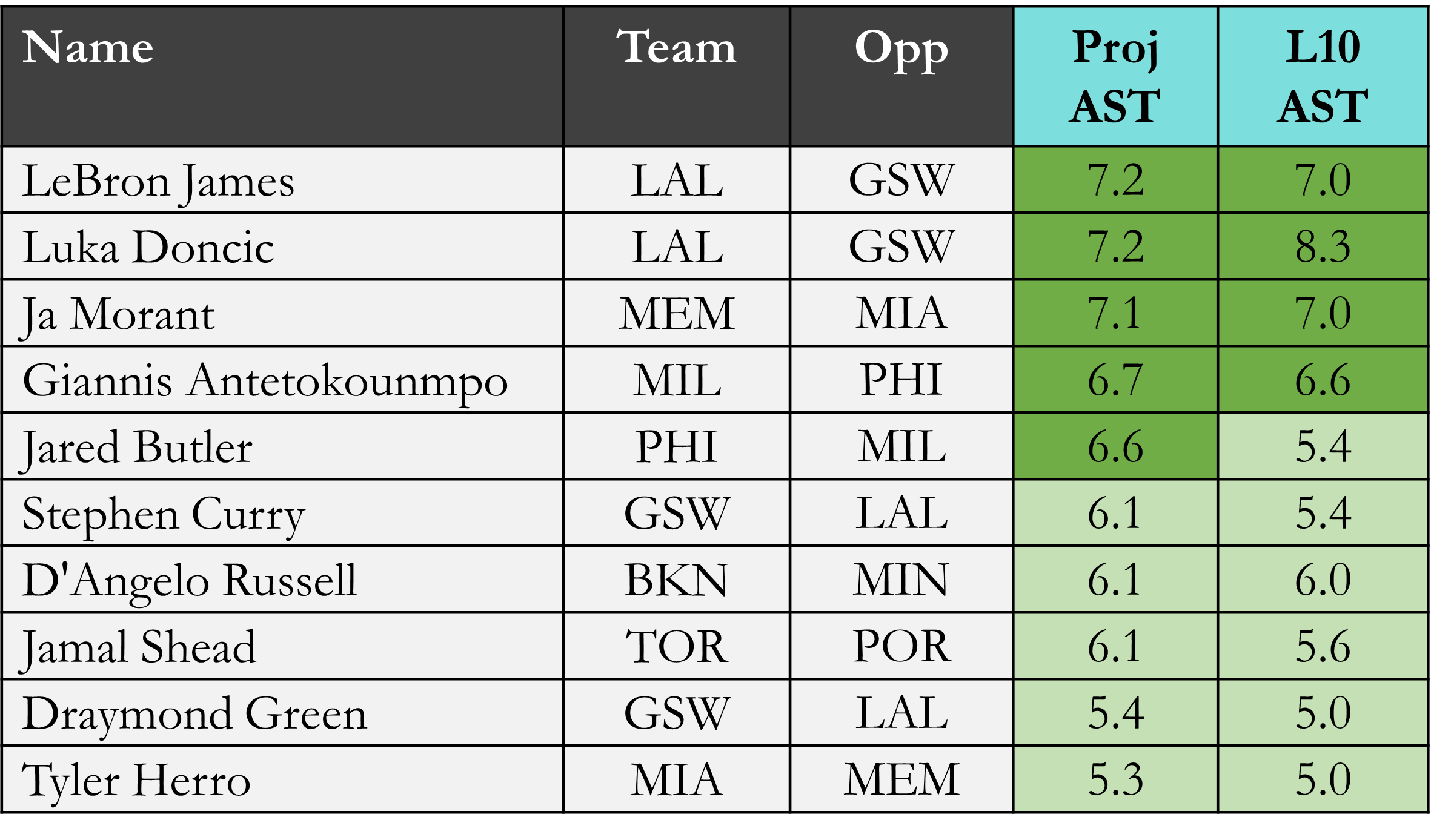Projected Assists
