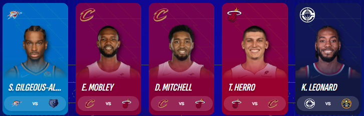 Top Five (5) Players in Classic Lineups: SGA (53%), K. Leonard (52%), T. Herro (48%), J. Williams (41%), N. Jokic (38%)