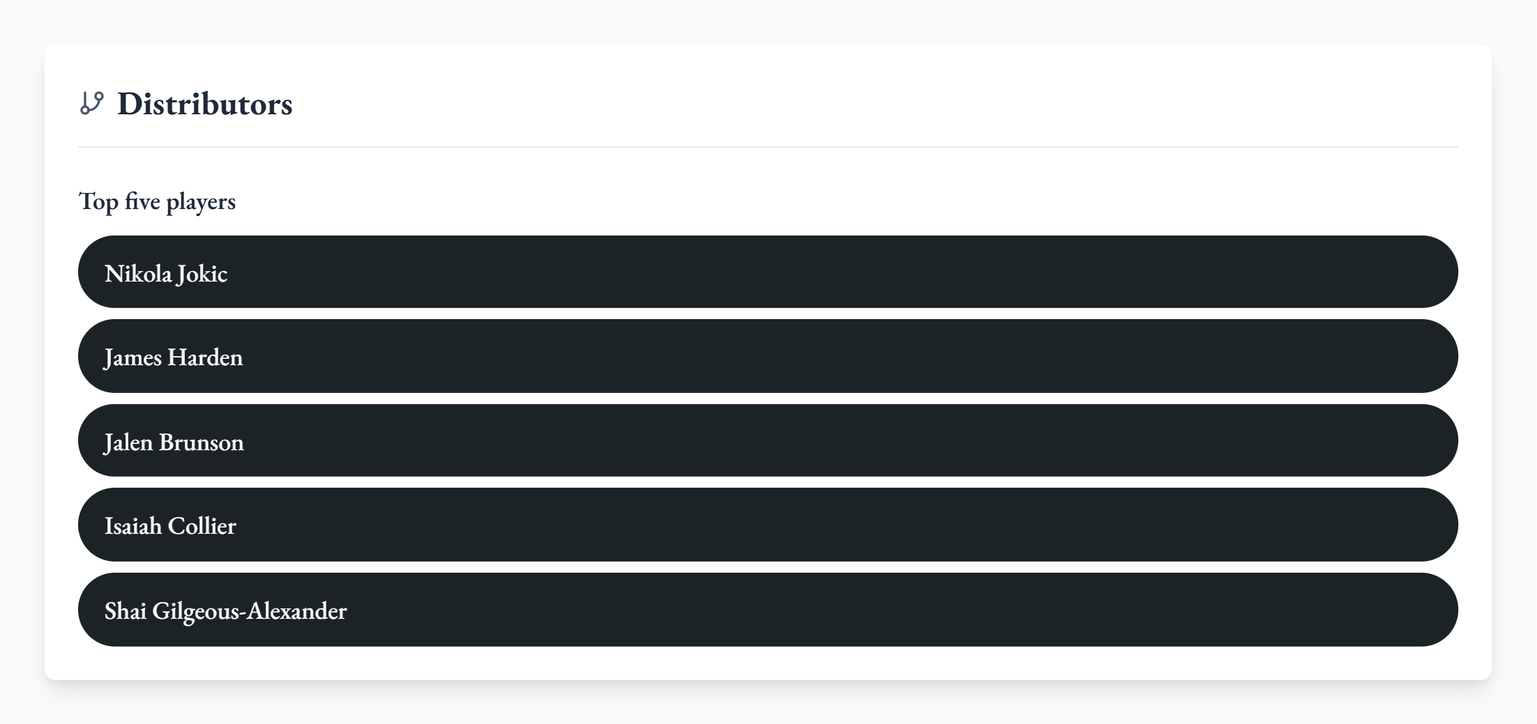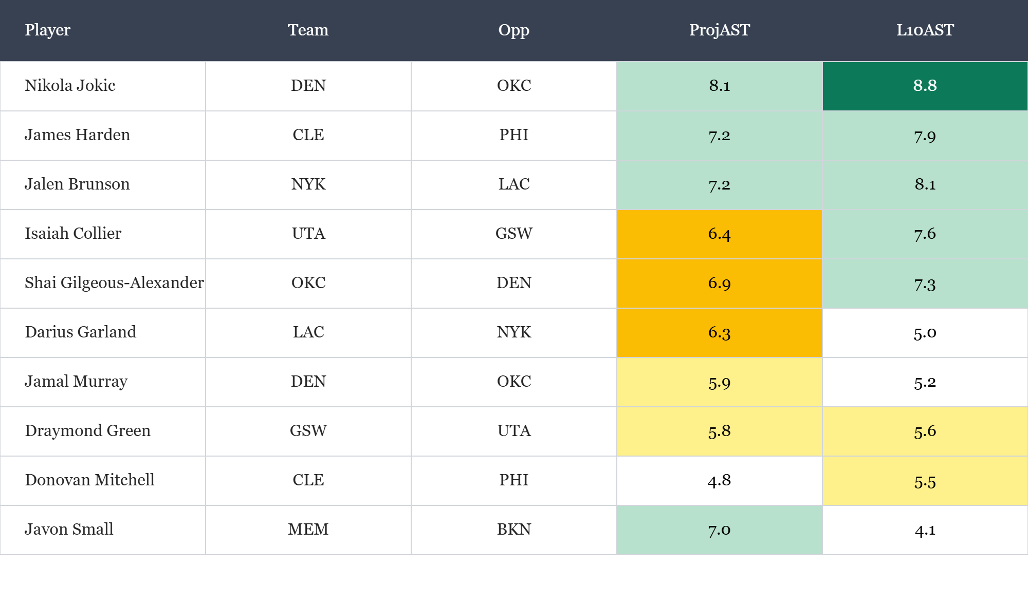 Top players in assists according to Rotowire & NBA.com, which is available in the table(s) below. Overall rank is based on daily projections and season averages, which is stack ranked amongst peers for each objective. When there is a single objective, the three data points are still used to stack rank the players vs. ranking solely on projections. For tome+ members, all active player stats are available in the provided data file. Omission of certain players would be based on injuries at the time of data pull.