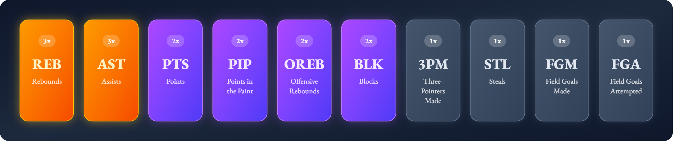 Day 2's objective was a passing and disruption test: 35 assists and 5 steals across eligible players — a floor of playmaking production that lives and dies by who you rostered.