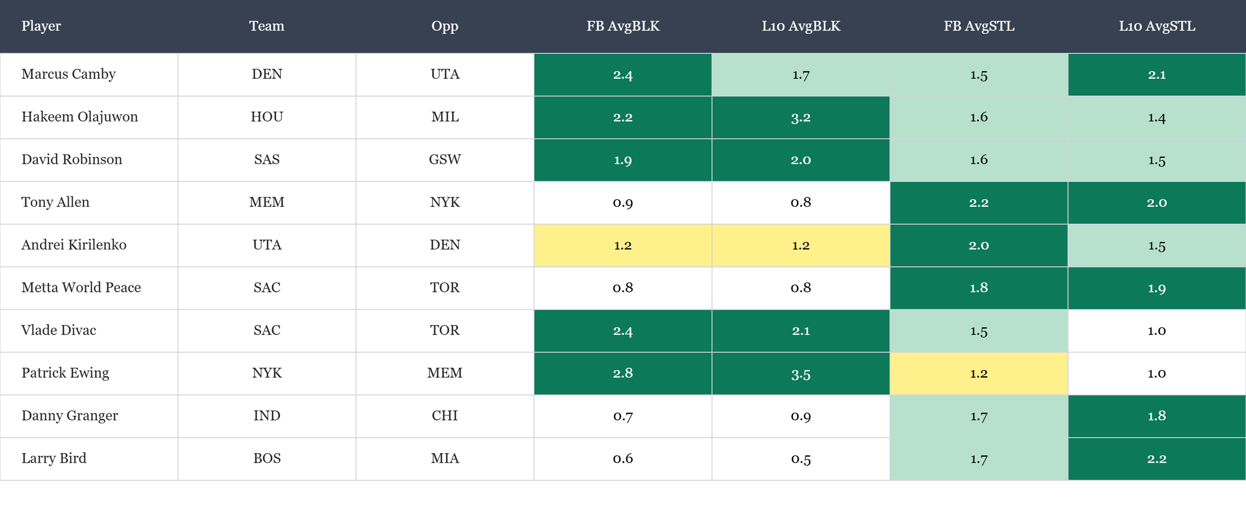 Top players in blocks & steals according to Rotowire & nbatopshot.com, which is available in the table(s) below. Overall rank is based on average results (across multiple historic runs), which is stack ranked amongst peers for each objective. When there is a single objective, the data points are still used to stack rank the players. For tome+ members, all active player stats are available in the provided data file.