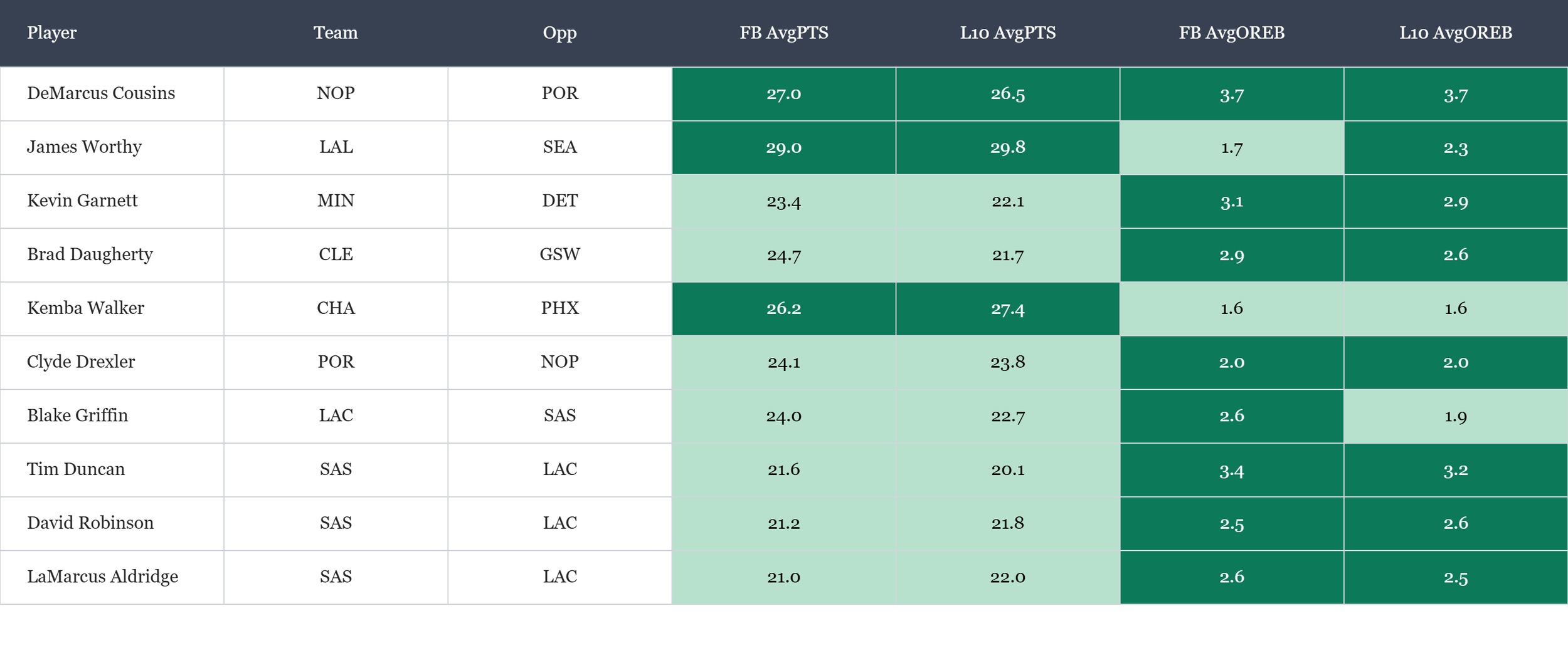 Top players in points scored & offensive rebounds according to Rotowire & nbatopshot.com, which is available in the table(s) below. Overall rank is based on average results (across multiple historic runs), which is stack ranked amongst peers for each objective. When there is a single objective, the data points are still used to stack rank the players. For tome+ members, all active player stats are available in the provided data file.