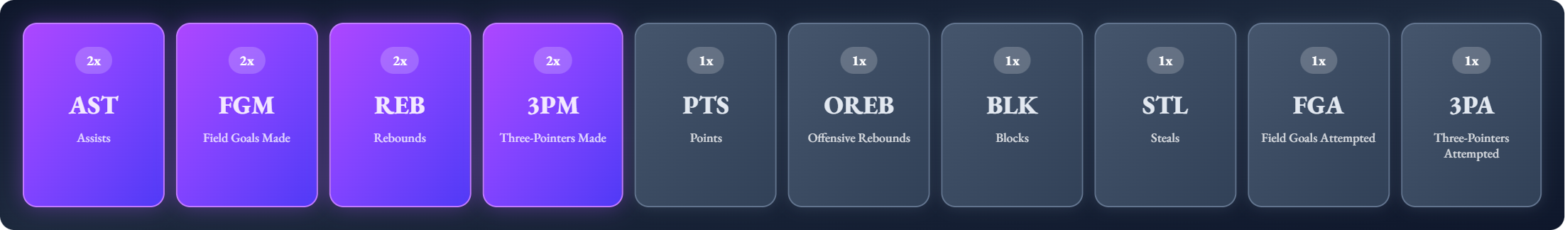 Objective(s): 100 Points Scored & 20 Assists (20.0 PTS & 4.0 AST)