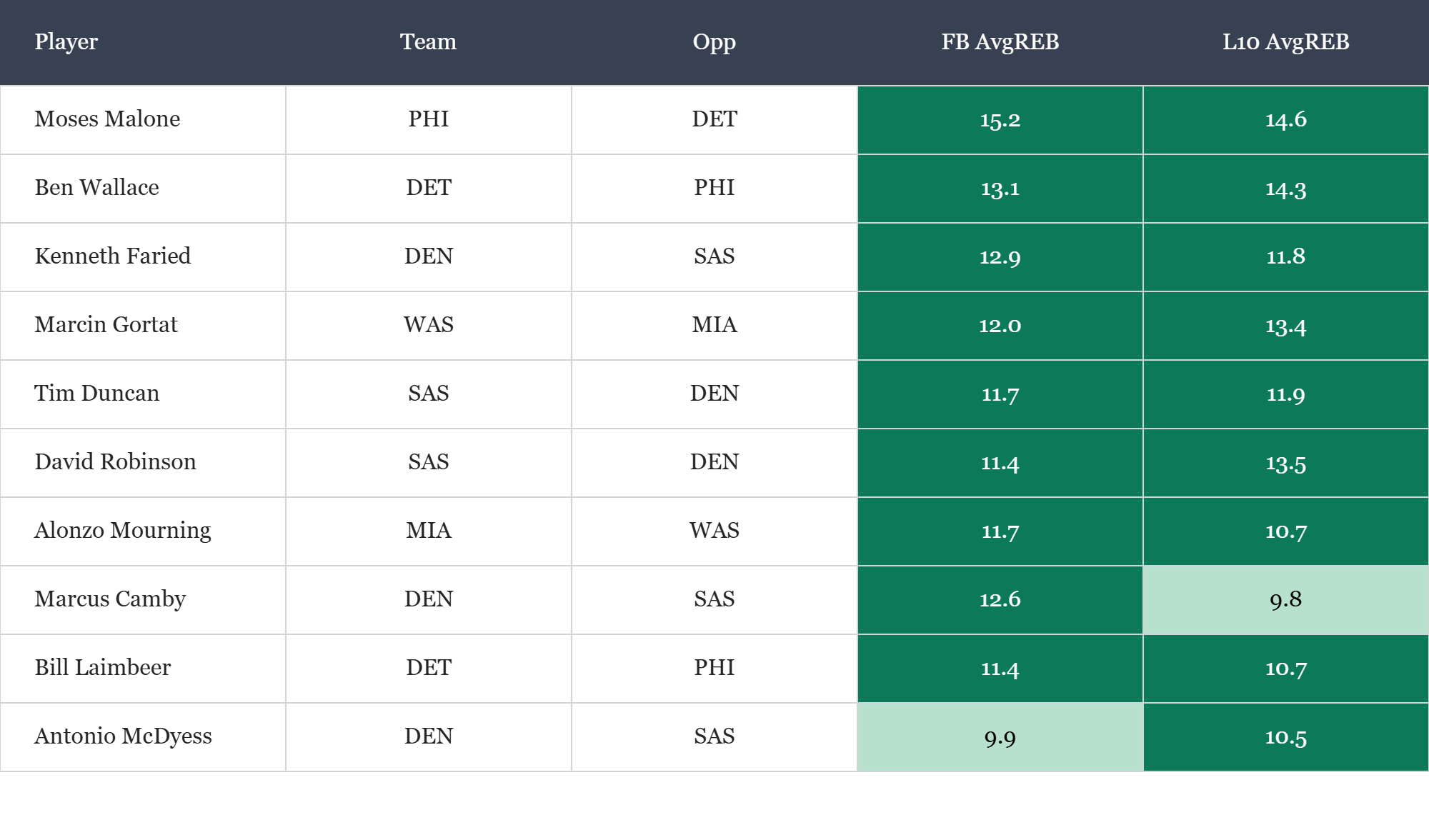 Top players in rebounds according to Rotowire & nbatopshot.com, which is available in the table(s) below. Overall rank is based on average results (across multiple historic runs), which is stack ranked amongst peers for each objective. When there is a single objective, the data points are still used to stack rank the players. For tome+ members, all active player stats are available in the provided data file.