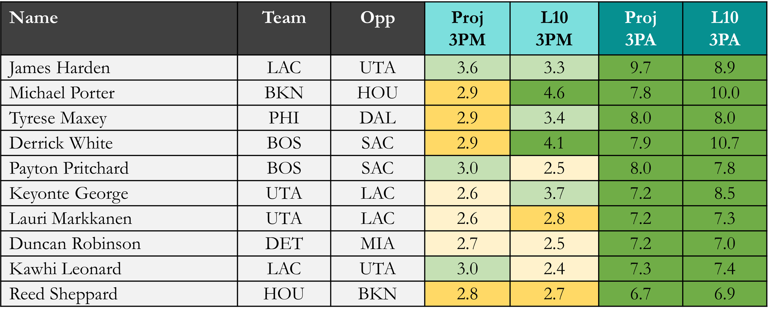 Projected 3PM & 3PA