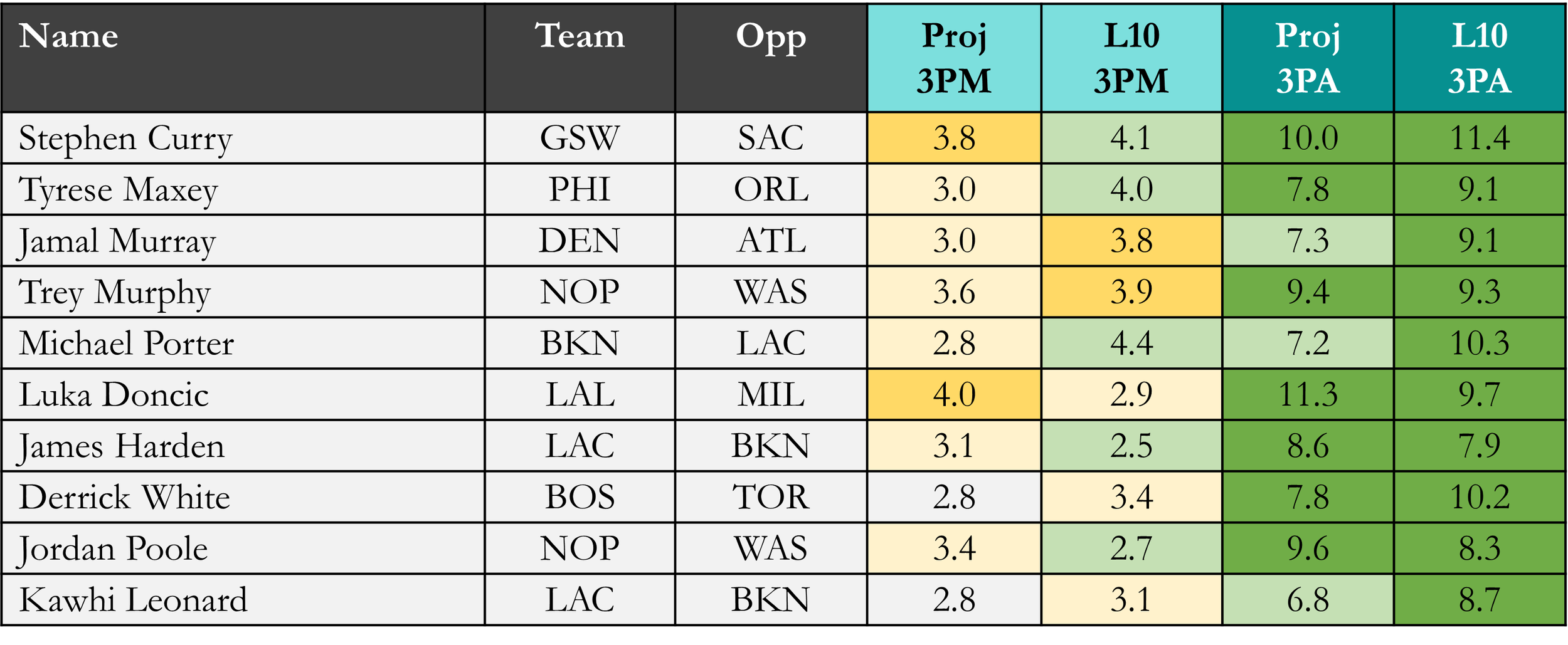 Projected 3PM & 3PA