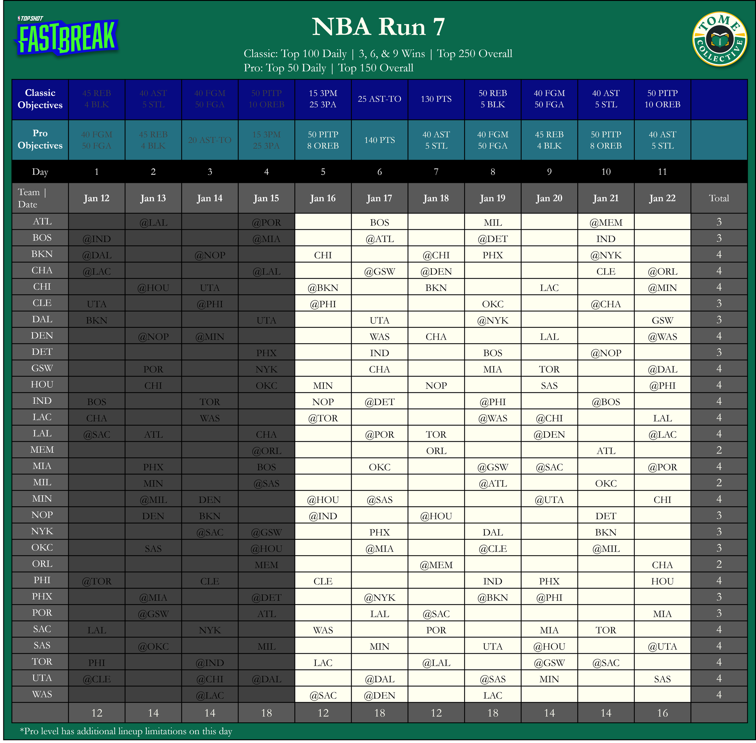 You’ll need five (5) players who will make 15.0 or more and take 25.0 or more three pointers, which means each player needs to average 3.0 3PM & 5.0 3PA. The former will determine whether you win and the latter will dictate where you rank. Additionally, your captain can very well make or break your day…or at least cover another player in your lineup’s shortcomings.