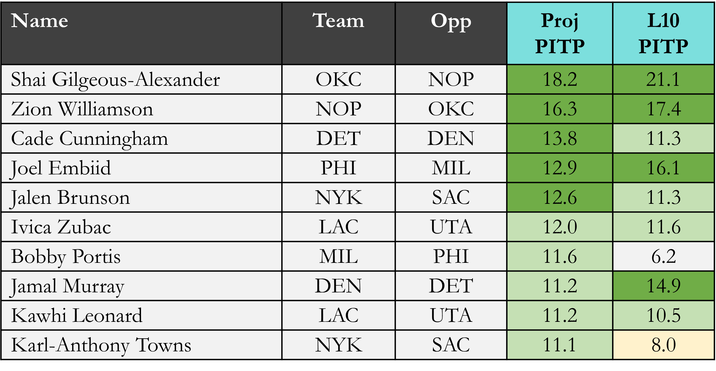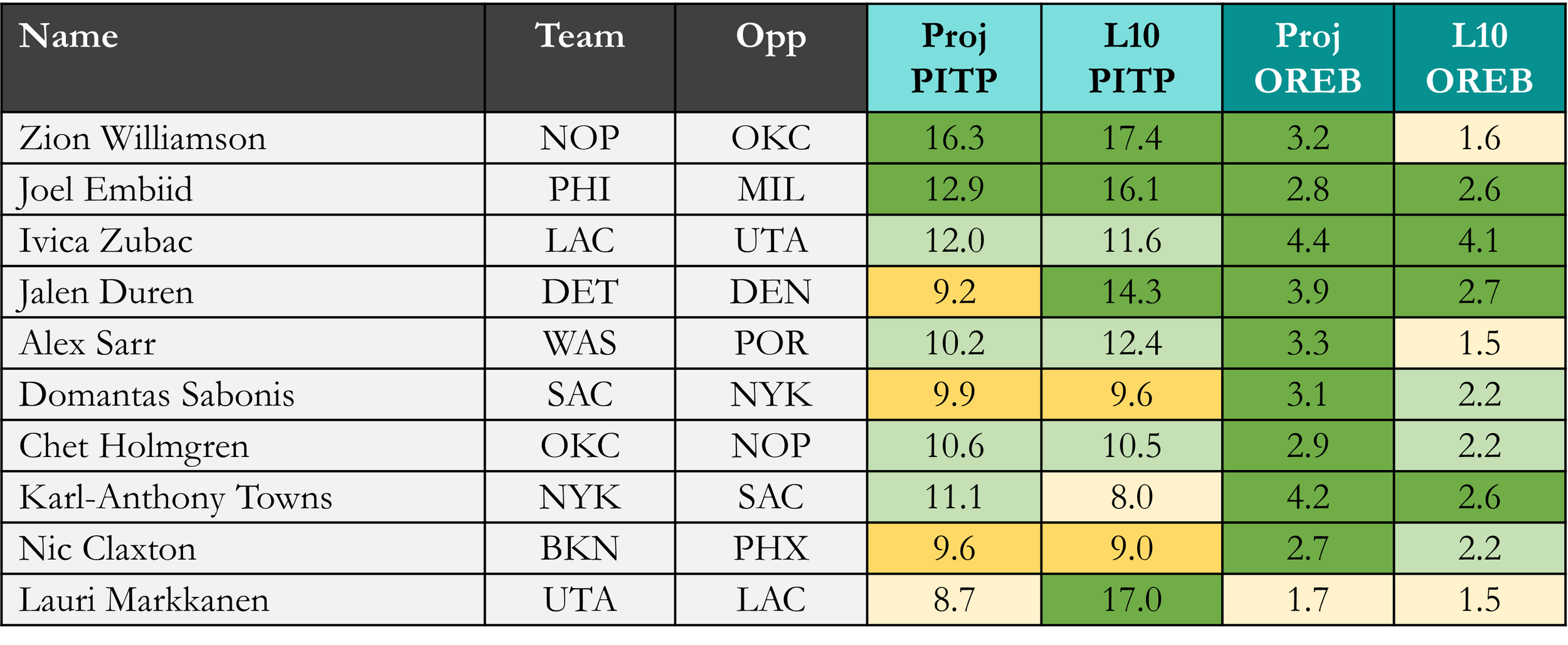 Projected PITP & OREB