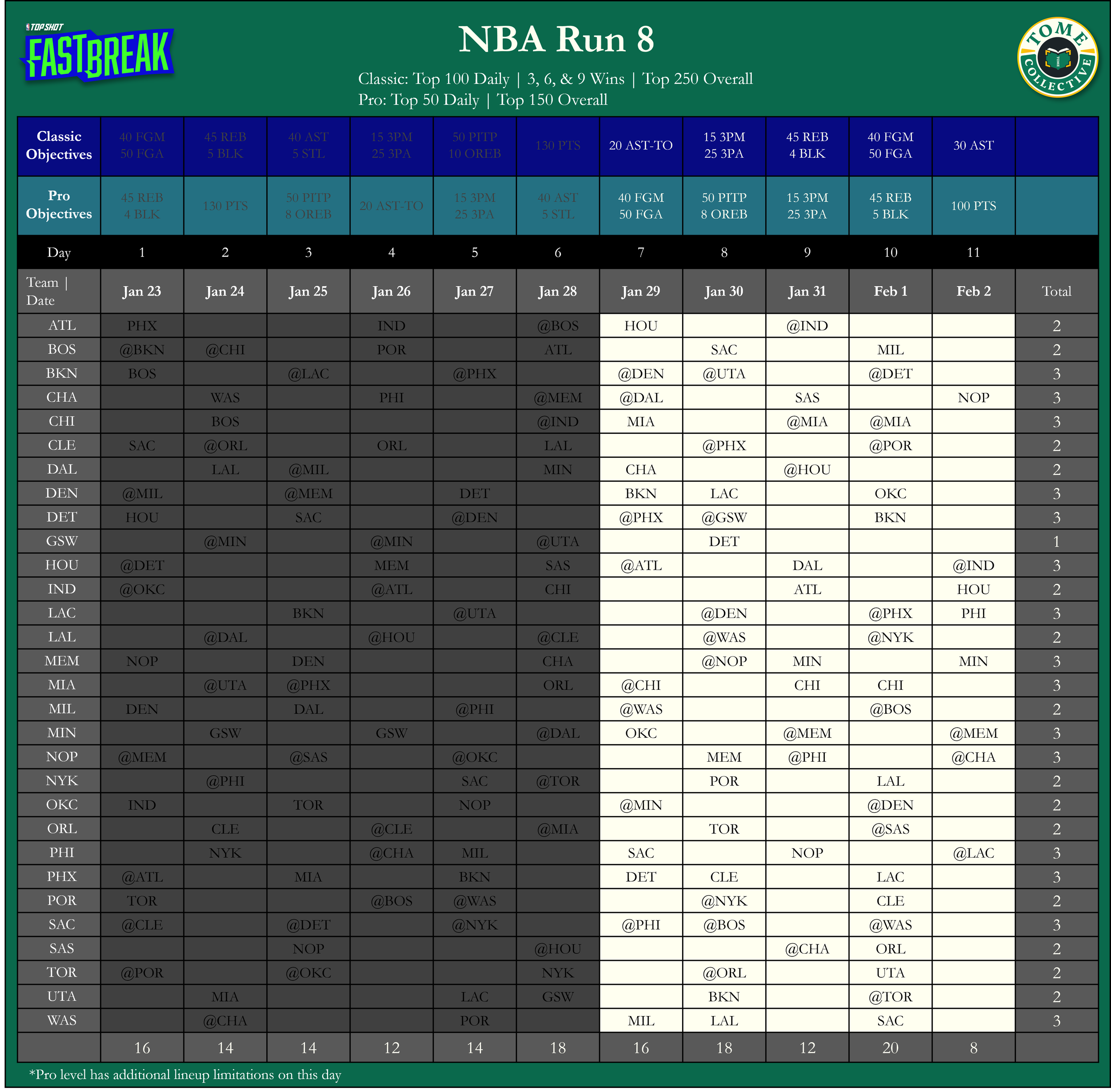 Daily: Top 100 | Milestone: 3, 6, & 9 Wins | Run: Top 250