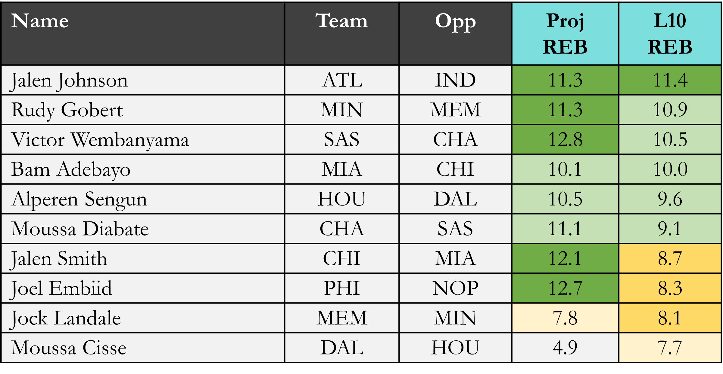 Projected Rebounds