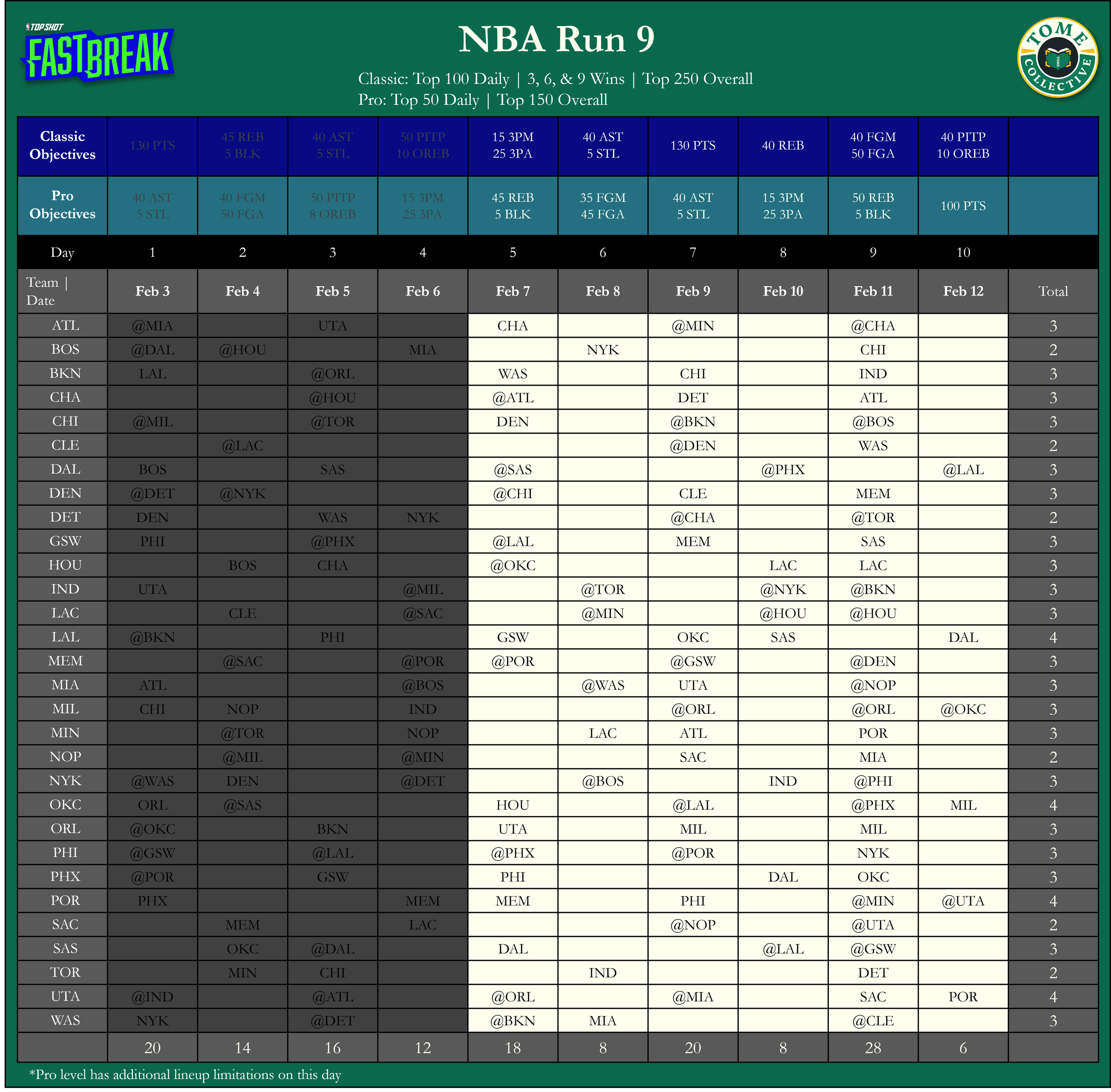 Today you’ll need five (5) players who will make 15.0 and take 25.0 three pointers, which means each player will need to average 3.0 3PM & 5.0 3PA. The former will determine whether you win and the latter will dictate where you rank. As a single player can derail your progress, your captain will be more important than most days.