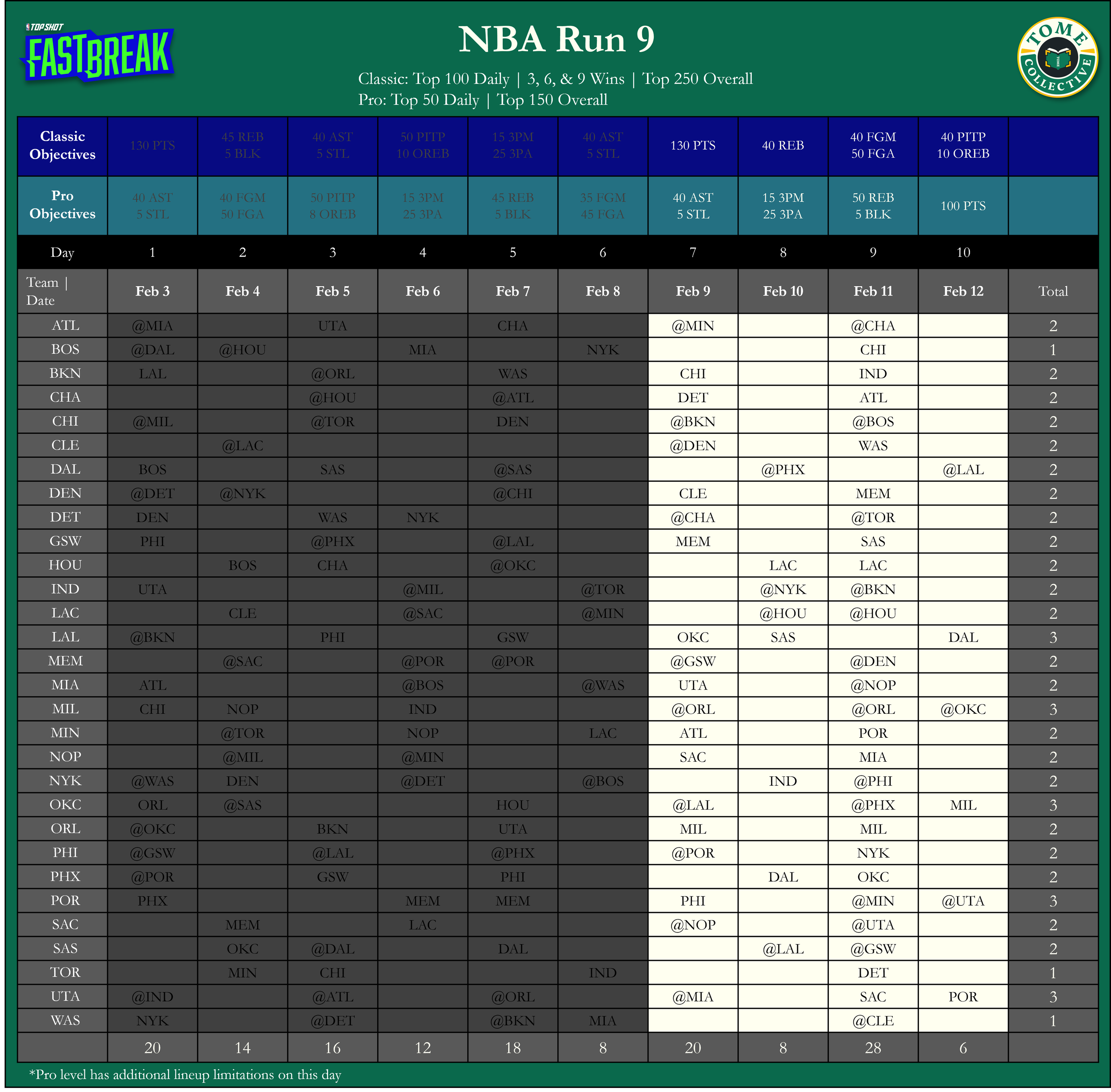 Daily: Top 100 | Milestone: 3, 6, & 9 Wins | Run: Top 250