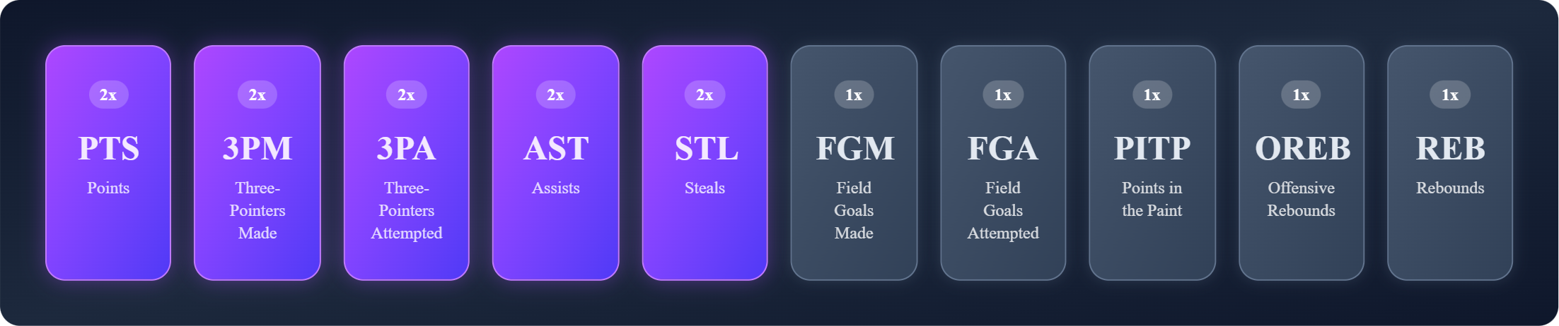 Today you’ll need five (5) players who will make 40.0 shots out of 50.0 attempts, which means each player will need to average 8.0 FGM & 10.0 FGA. The former will dictate whether you win and the latter determines where you rank overall - that plus the performance of your captain.