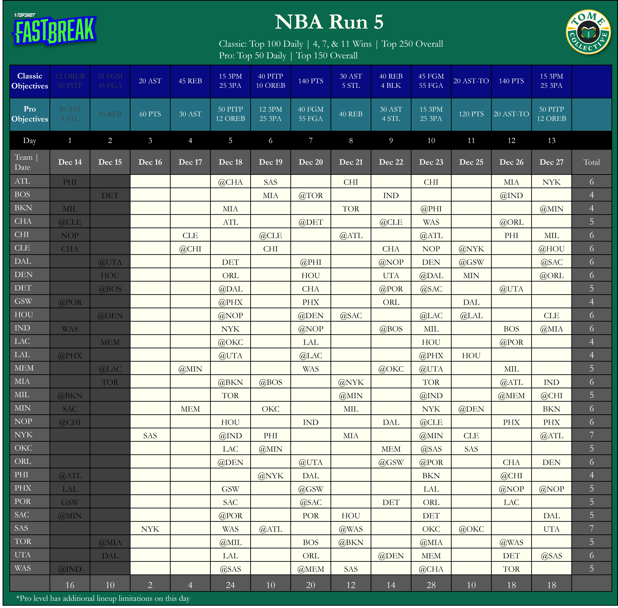 The top players for today’s Fast Break objective(s). Source: nbatopshot.com, nba.com, & tomecollective.com, 2025.
