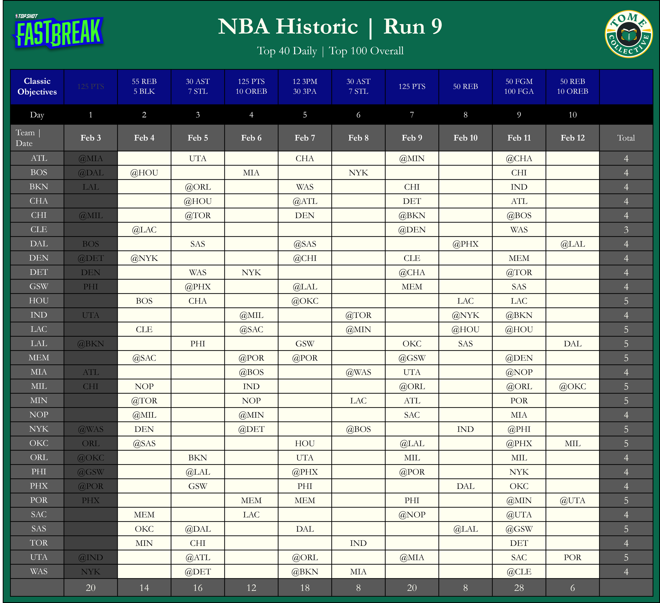 The top players for today’s Fast Break objective(s). Source: nbatopshot.com & tomecollective.com, 2026.