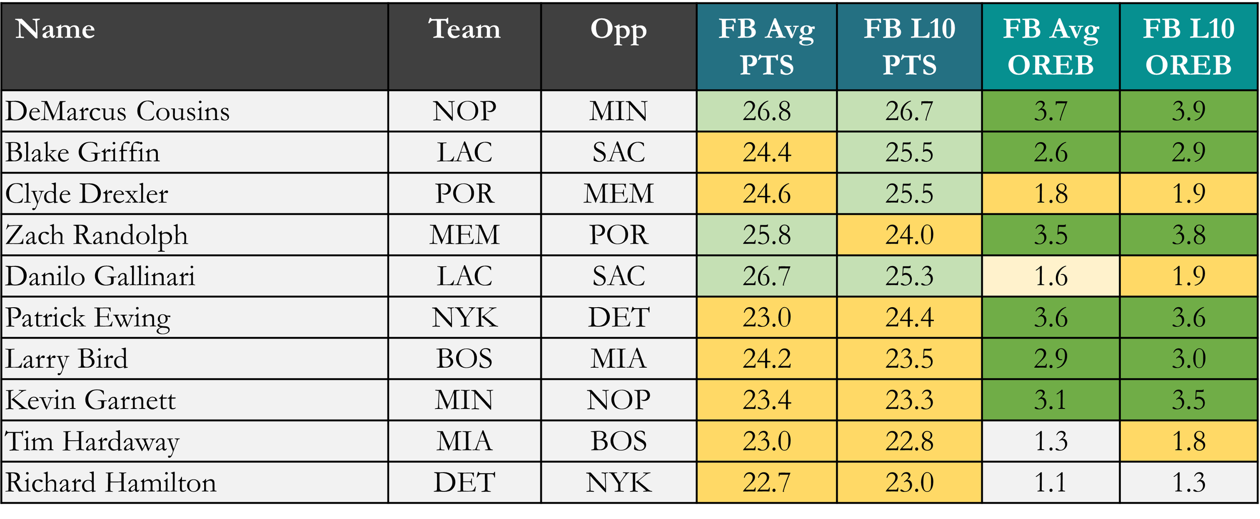 B Tier (averaged 24.0+ PTS & 1.5+ OREB): Zach Randolph, Danilo Gallinari, Patrick Ewing