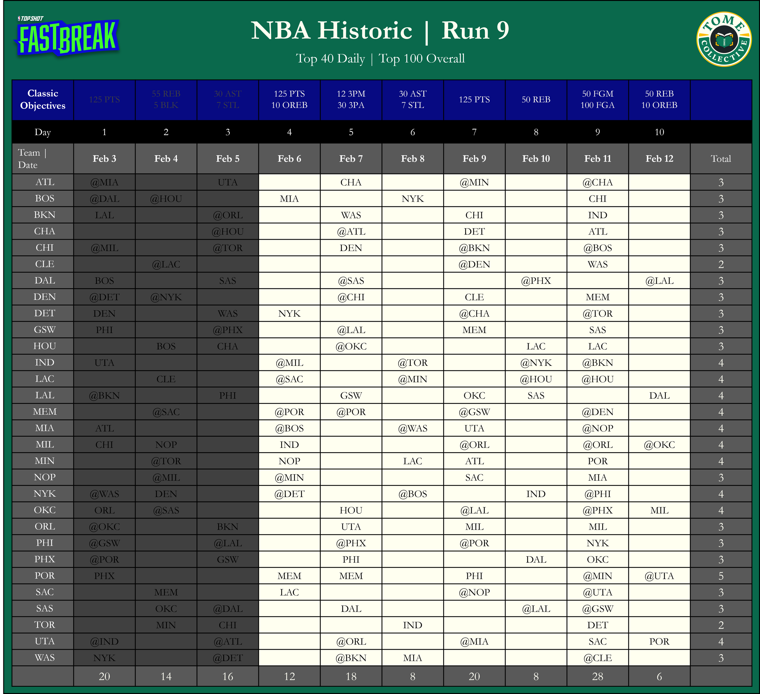 The top players for today’s Fast Break objective(s). Source: nbatopshot.com & tomecollective.com, 2026.