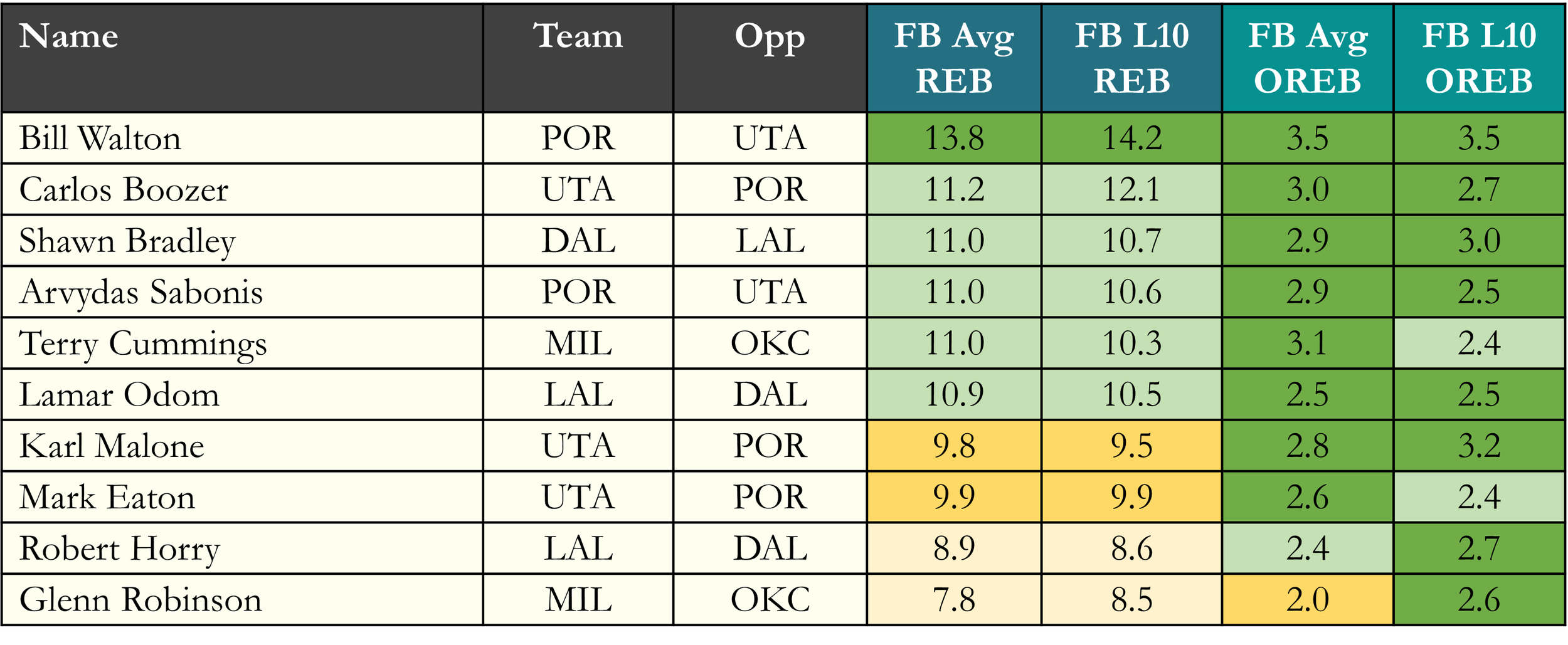 A Tier (averaged 10.0+ REB & 2.0 OREB): Carlos Boozer, Shawn Bradley, Arvydas Sabonis, Terry Cummings, Lamar Odom