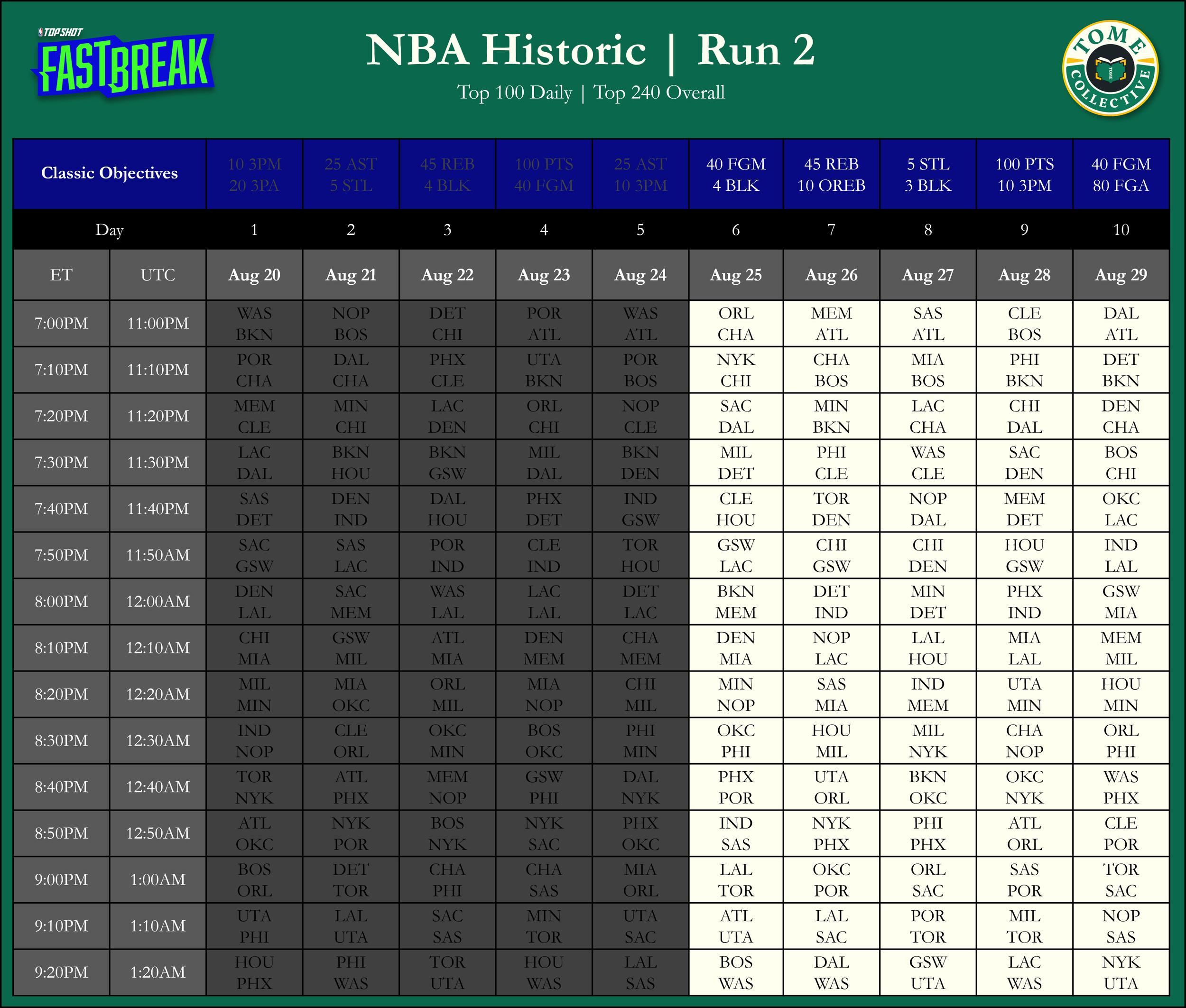 The top players for today’s Fast Break objective(s). Source: nbatopshot.com & tomecollective.com, 2025.