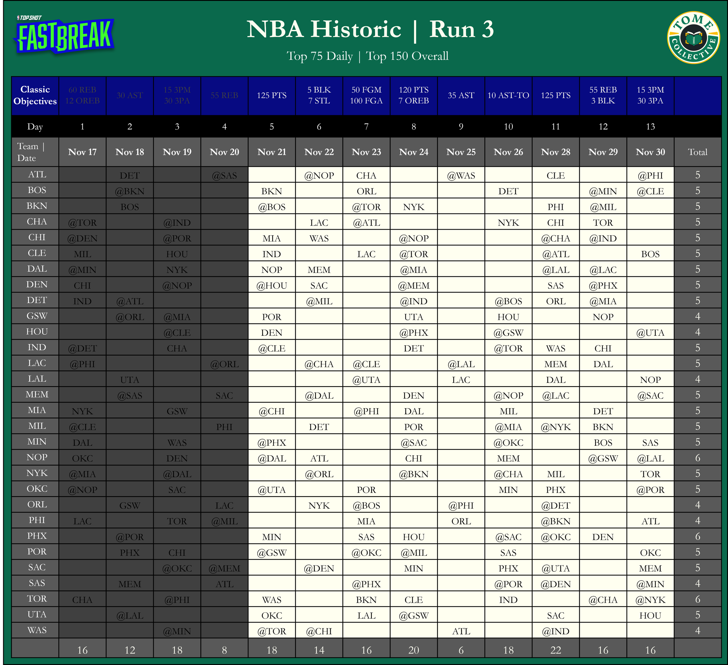 The top players for today’s Fast Break objective(s). Source: nbatopshot.com & tomecollective.com, 2025.