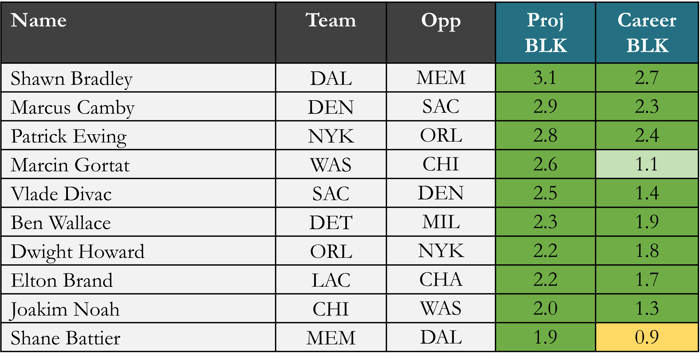S Tier (1.4+ BLK): Shawn Bradley, Marcus Camby, Patrick Ewing, Marcin Gortat, Vlade Divac, Ben Wallace, Dwight Howard, Elton Brand, Joakim Noah, Shane Battier, Josh Smith, Tyson Chandler, Dikembe Mutombo, Gerald Wallace
