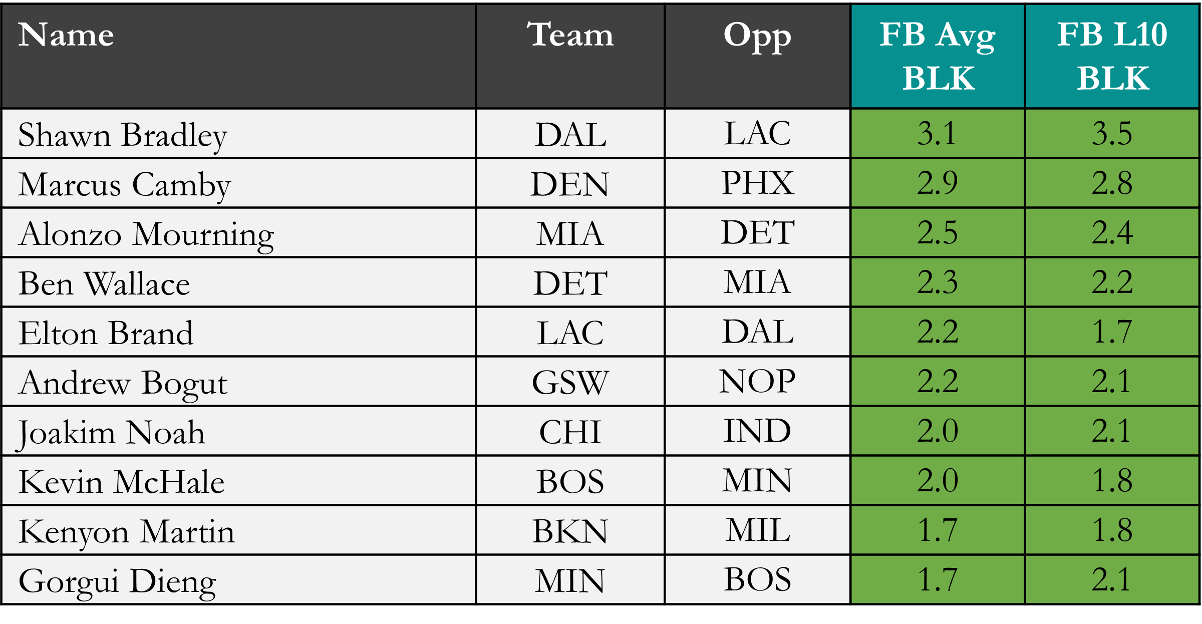 Top players in rebounds & blocks according to Rotowire & nbatopshot.com, which is available in the table(s) below. Overall rank is based on average results (across multiple historic runs), which is stack ranked amongst peers for each objective. When there is a single objective, the data points are still used to stack rank the players. For tome+ members, all active player stats are available in the provided data file.