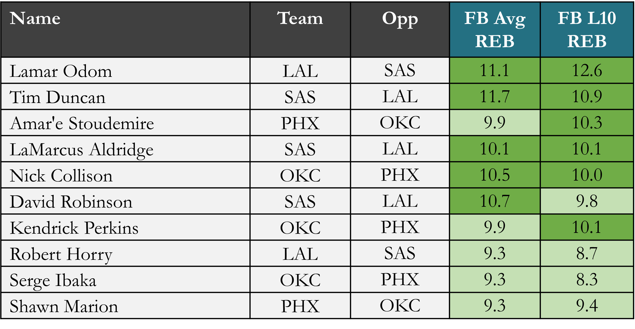 S Tier (averaged 10.0+ REB): Lamar Odom, Tim Duncan, LaMarcus Aldridge, Nick Collison