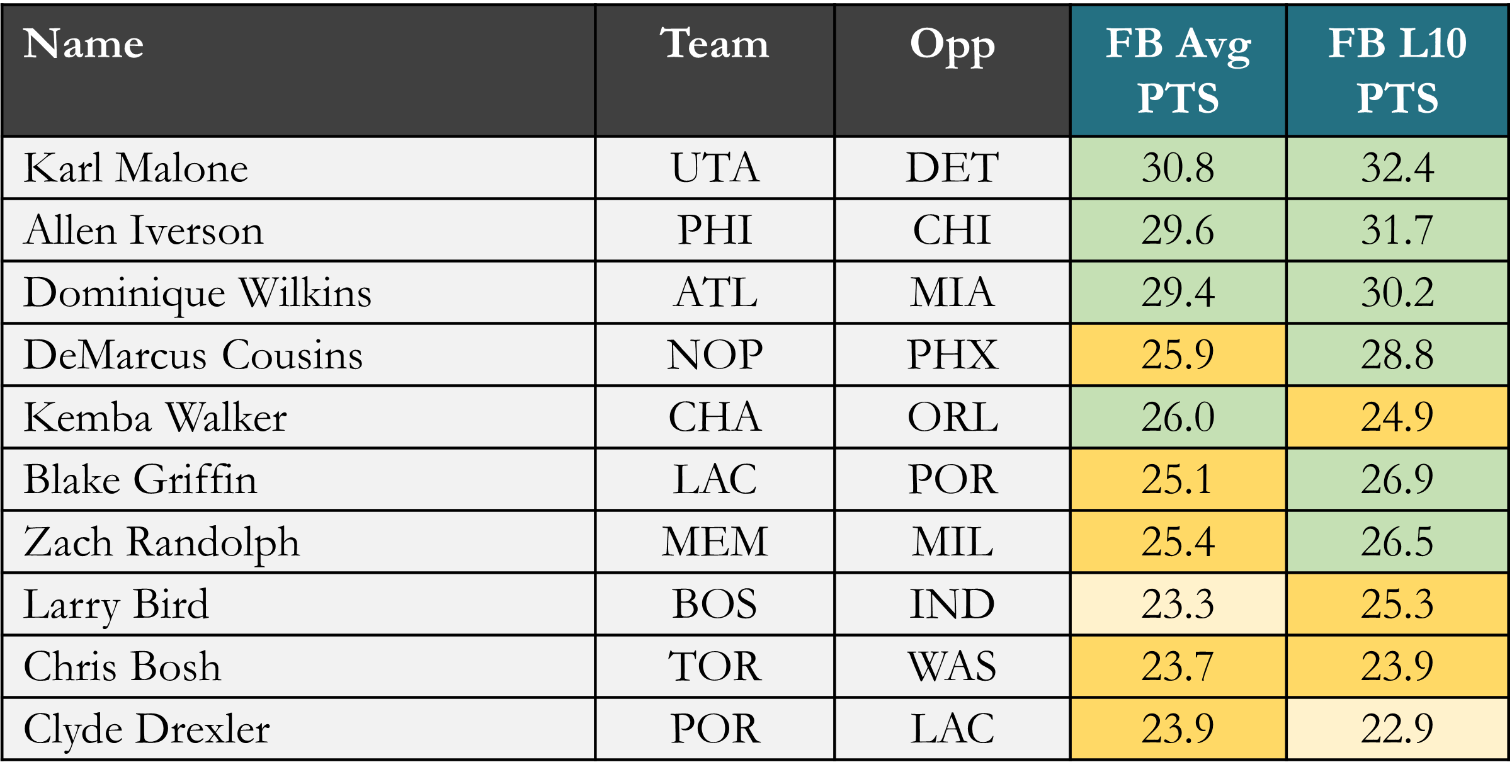 A Tier (averaged 26.0+ PTS): DeMarcus Cousins, Blake Griffin, Zach Randolph