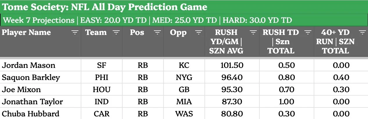 Note: Jonathan Taylor has been ruled out for Week 7.