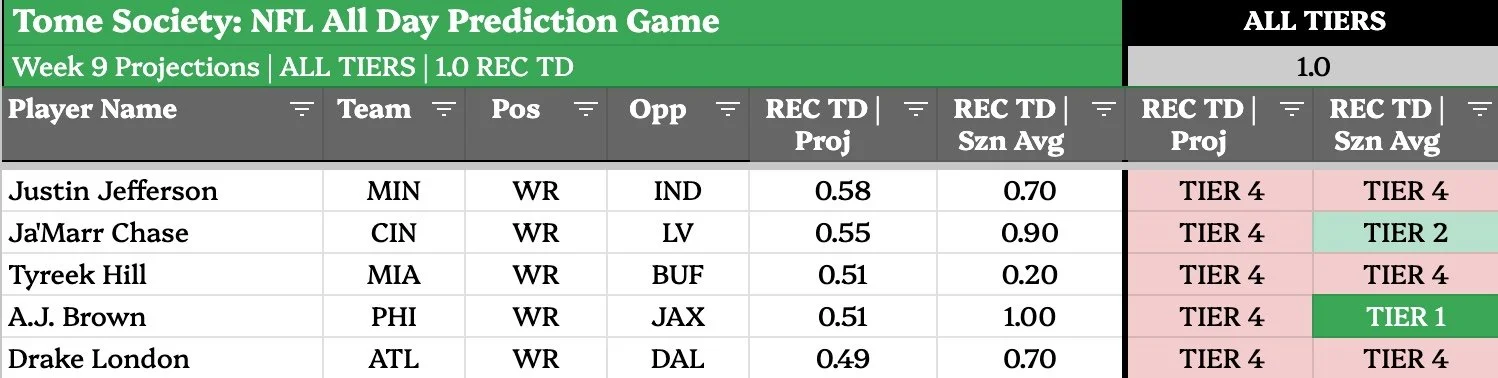 TOME+ Exclusive: Prediction Game Data - google sheets of data referenced below; color-coded, sortable, & filterable