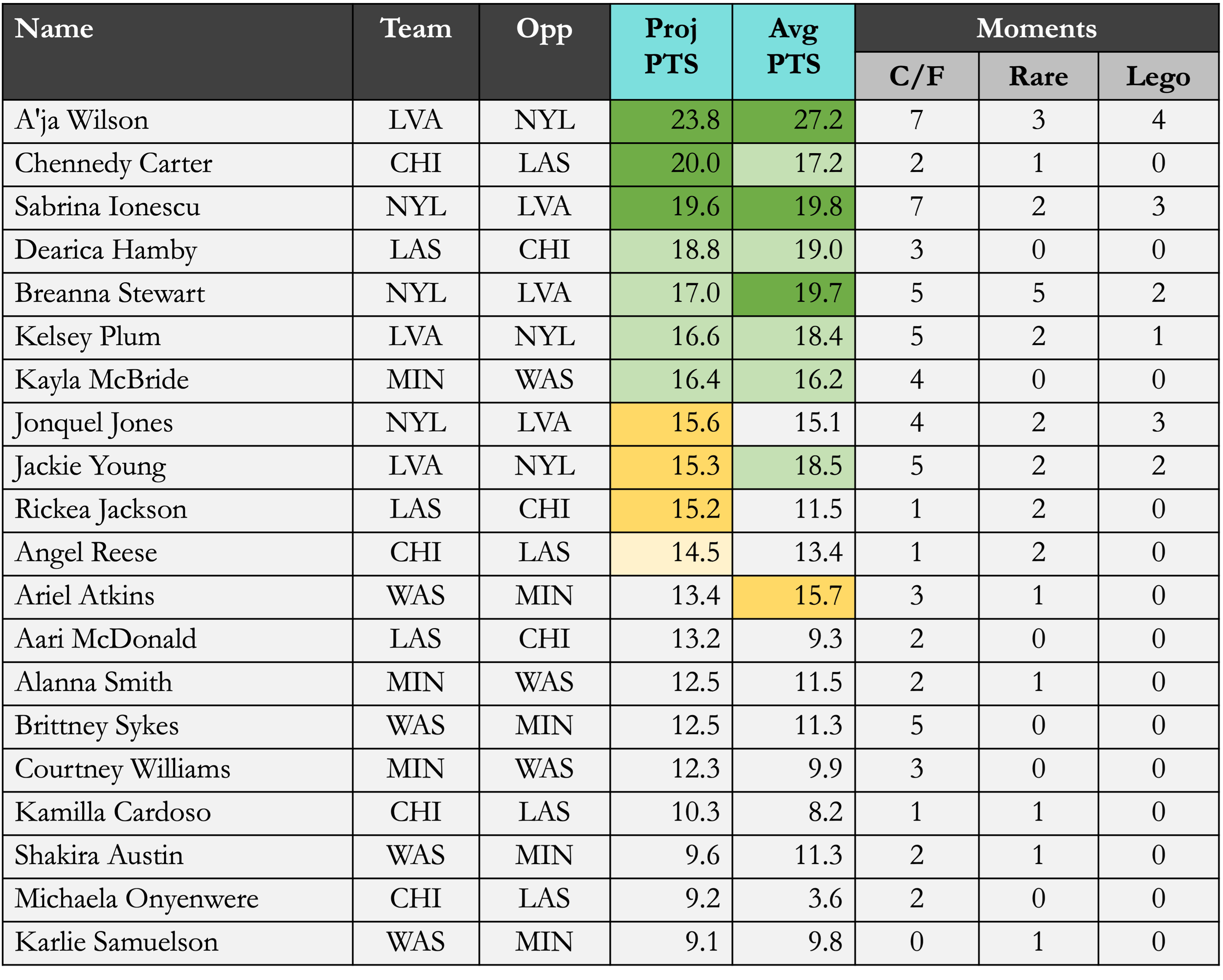 Top 20 players in projected Points Scored according to Rotowire, which is available in the table below. The players highlighted in pink do not yet have a TopShot moment.